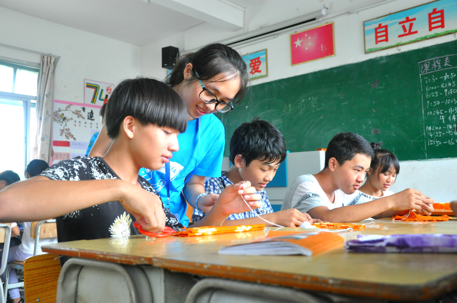本次暑期下鄉(xiāng)支教項目設(shè)置了五個支教點,分別在云浮、河源、梅州、茂名、廉江。志愿者們?yōu)閷W(xué)生們帶來音樂、扎染、定向越野等別開生面的課堂。