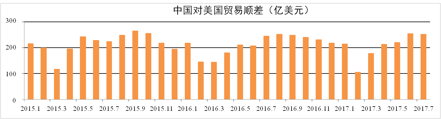 1-7月中美貿(mào)易累計(jì)順差1435億美元,較上年同期上漲6.3%。其中,7月份中美貿(mào)易順差為252億美元,同比上漲2.73%,環(huán)比微跌0.79%,為年內(nèi)第二高。 7月舉行的中美全面經(jīng)濟(jì)對(duì)話亦未能就鋼鐵貿(mào)易摩擦達(dá)成共識(shí)。