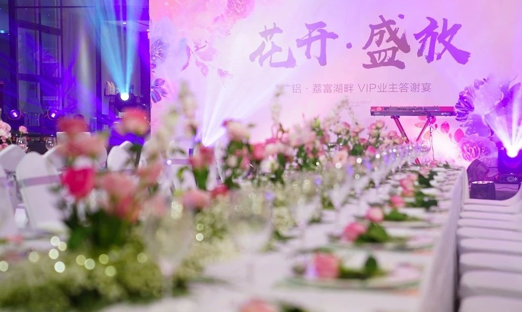 家居大變身活動啟動儀式圓滿結束后,荔富湖畔售樓部迅速變身媲美網(wǎng)紅拍照打卡地的大花園,“花開·盛放”VIP業(yè)主答謝宴隆重開席。