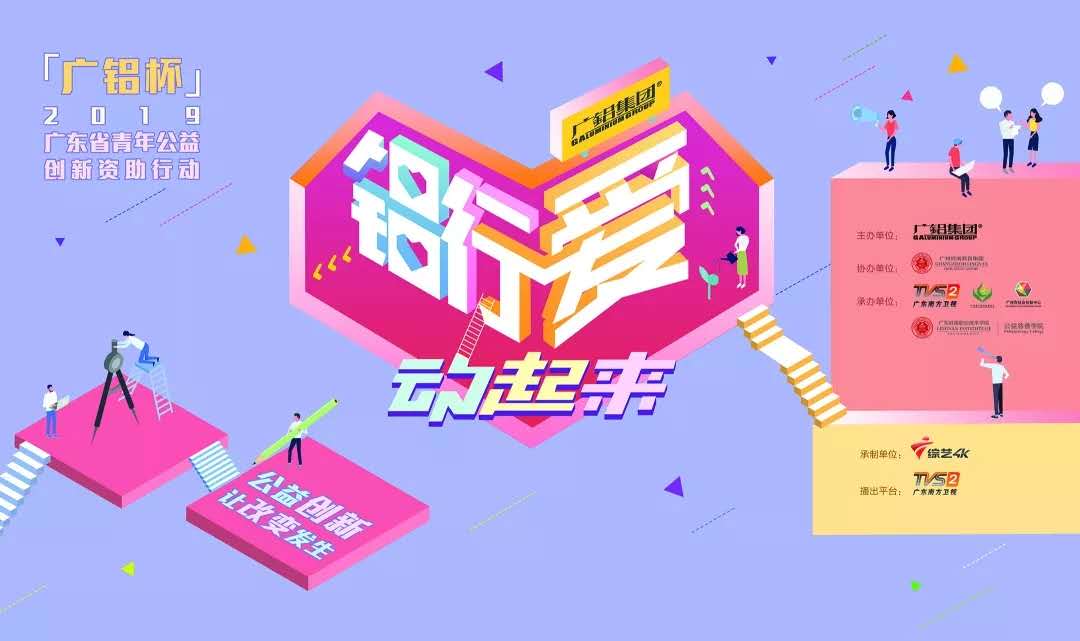 由廣鋁集團(tuán)有限公司主辦,廣州嶺南教育集團(tuán)協(xié)辦,廣東廣播電視臺(tái)南方衛(wèi)視、廣東省廣鋁公益基金會(huì)、廣東嶺南職業(yè)技術(shù)學(xué)院公益慈善學(xué)院、廣州市社會(huì)創(chuàng)新中心承辦,廣東廣播電視臺(tái)綜藝4K頻道承制的《鋁行愛 動(dòng)起來“廣鋁杯”2019廣東省青年公益創(chuàng)新資助行動(dòng)》活動(dòng)正在熱烈進(jìn)行中。