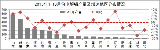 發(fā)稿時(shí)間:2015-12-09市場(chǎng)供給方面:產(chǎn)能方面,10月全國(guó)電解鋁建成產(chǎn)能約3800萬(wàn)噸,運(yùn)行產(chǎn)能3086萬(wàn)噸,開工率為81.3%;產(chǎn)量方面,10月電解鋁產(chǎn)量259萬(wàn)噸,同比增長(zhǎng)9.8%,累計(jì)同比增長(zhǎng)4.8%,其中:山東、新疆、內(nèi)蒙、河南等省份全國(guó)產(chǎn)量占比65%。截至11月18日,電解鋁合計(jì)減產(chǎn)389萬(wàn)噸,占國(guó)內(nèi)總產(chǎn)能的10.3%,其影響效果將于2016年第二季度得到體現(xiàn)。