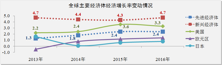 國(guó)際貨幣基金組織(IMF)在2015年全球經(jīng)濟(jì)發(fā)展展望預(yù)測(cè)報(bào)告中指出,目前全球經(jīng)濟(jì)呈現(xiàn)出四個(gè)趨勢(shì):一是石油價(jià)格自去年9月份以來(lái)下跌近55%;二是全球經(jīng)濟(jì)增長(zhǎng)基本符合預(yù)期,但主要經(jīng)濟(jì)體增長(zhǎng)情況存在顯著差異;三是美元退出QE后幣值上升近6%;四是新興經(jīng)濟(jì)體的利率及風(fēng)險(xiǎn)利差逐步上升。IMF預(yù)計(jì)2015-2016年全球經(jīng)濟(jì)增長(zhǎng)率分別為3.5%和3.7%。相比2014年10月期《世界經(jīng)濟(jì)展望》的預(yù)測(cè),IMF對(duì)全球經(jīng)濟(jì)增長(zhǎng)率下調(diào)了0.3個(gè)百分點(diǎn)。之所以做出這種調(diào)整,是因?yàn)閷?duì)中國(guó)、俄羅斯、歐元區(qū)和日本經(jīng)濟(jì)前景做出了重新評(píng)估。應(yīng)引起注意的是,美國(guó)是唯一增長(zhǎng)預(yù)測(cè)上調(diào)的主要經(jīng)濟(jì)體。